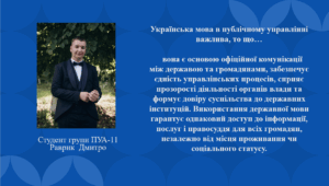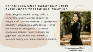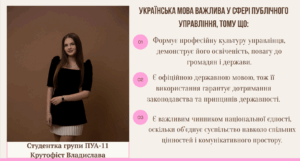 Вивчаючи курс «Українська мова за професійним спрямуванням» (викладач – доц. Любов Пена), студенти групи ПУА-11 факультету управління розмірковують про важливість мови у сфері своєї майбутньої професії.