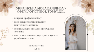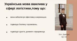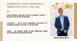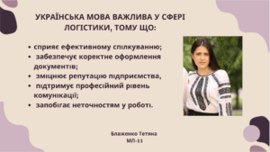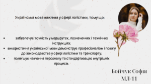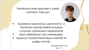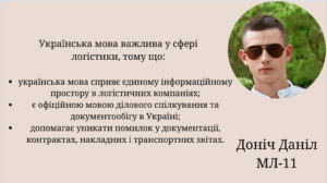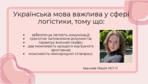 Про значення мови у сфері логістики роздумують студенти групи МЛ-11 факультету управління. Ось лише деякі їхні висловлювання: