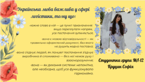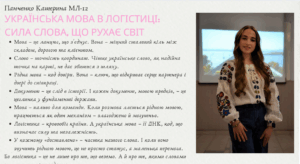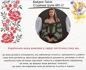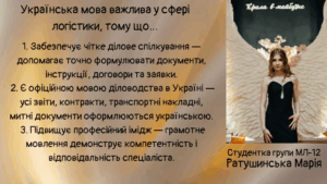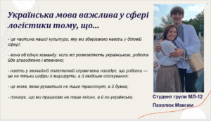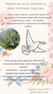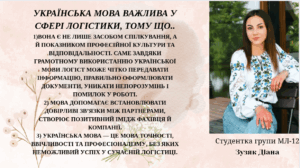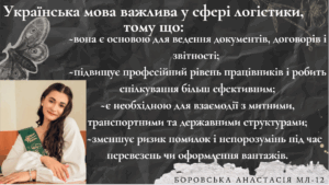 МОВА У СФЕРІ ЛОГІСТИКИ Міркуваннями про важливість мови для свого майбутнього фаху діляться першокурсники групи МЛ-12 факультету управління, вивчаючи дисципліну “Українська мова за професійним спрямуванням”.