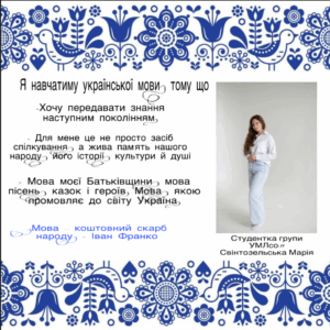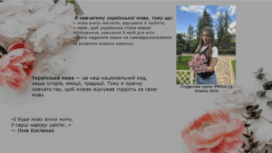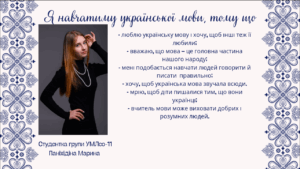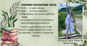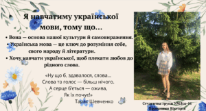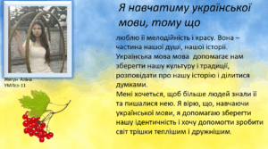 «Повсякденний ужиток української мови дуже важливий. Та ще важливіше пильно вивчати її, любовно передавати дітям, творити нею багату, цікаву, оригінальну культуру» (П.Селігей).