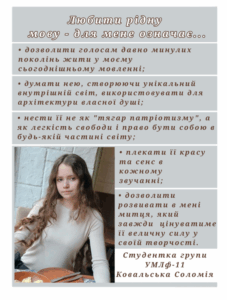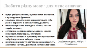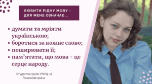 Чому я розмовляю українською? Що для мене означає любити рідну мову? Чому я пов’язала свою майбутню професію з навчанням української мови? Про це розмірковують першокурсниці факультету філології.