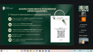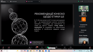 Учасники тренінгу обговорили ризики і можливості використання ШІ в освітньому середовищі, обмінялися досвідом і отримали практичні поради щодо етичного застосування інноваційних технологій у науковій діяльності.