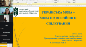 На запрошення центру доцентка Любов Іванівна Пена прочитала три лекції на такі теми: «Українська мова – мова професійного спілкування», «Норми сучасної української літературної мови в контексті оновленого правопису», «Лексико-стилістичний аспект ділового спілкування».